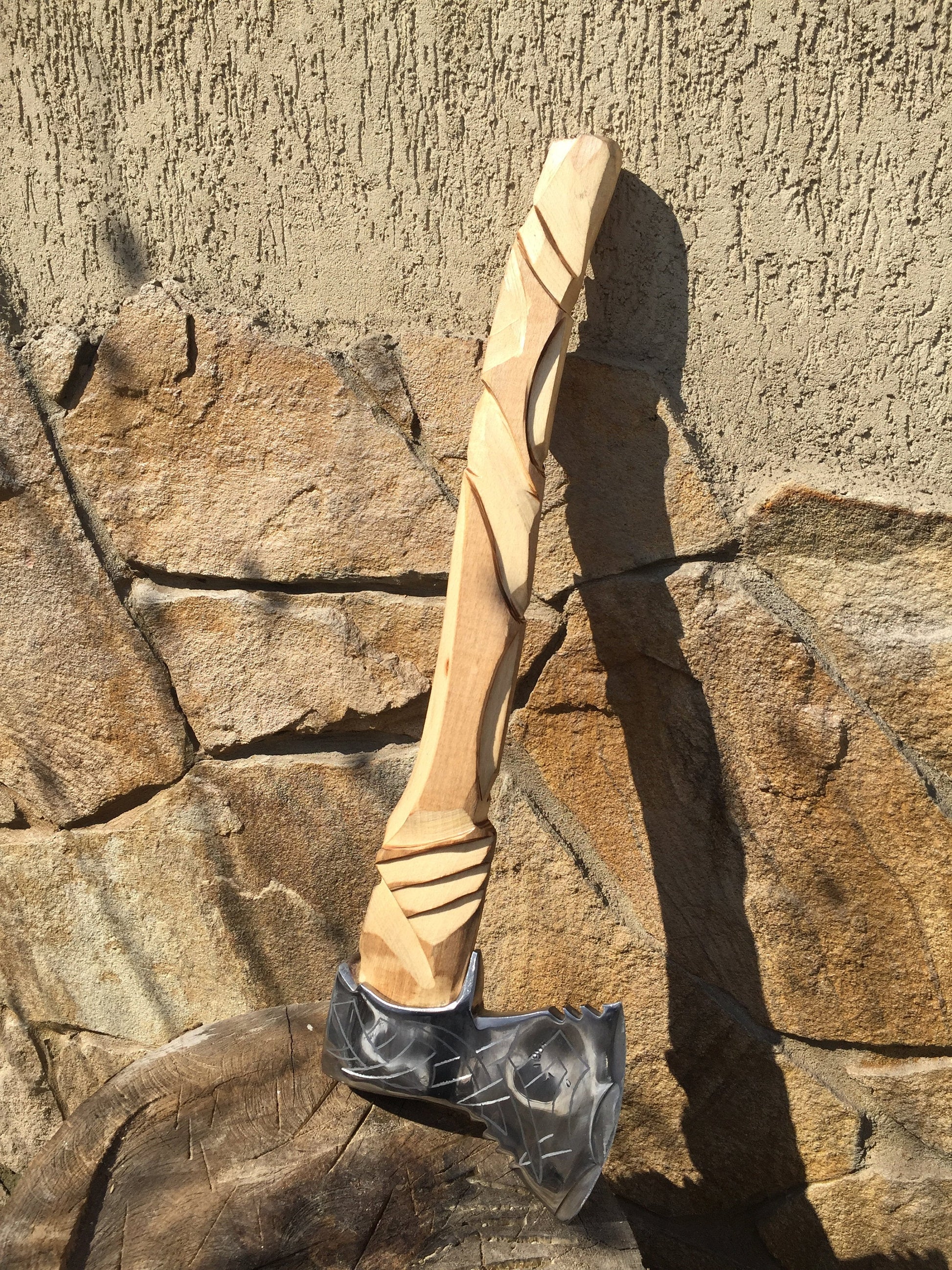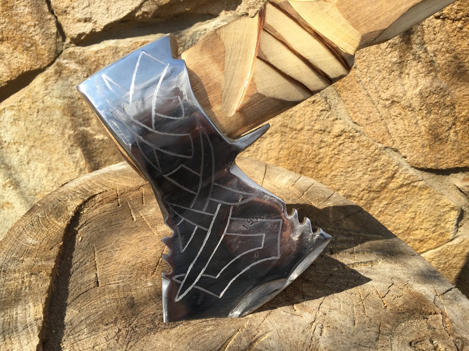 AXE WITH A CARVED HANDLE AND ENGRAVED AXE HEAD