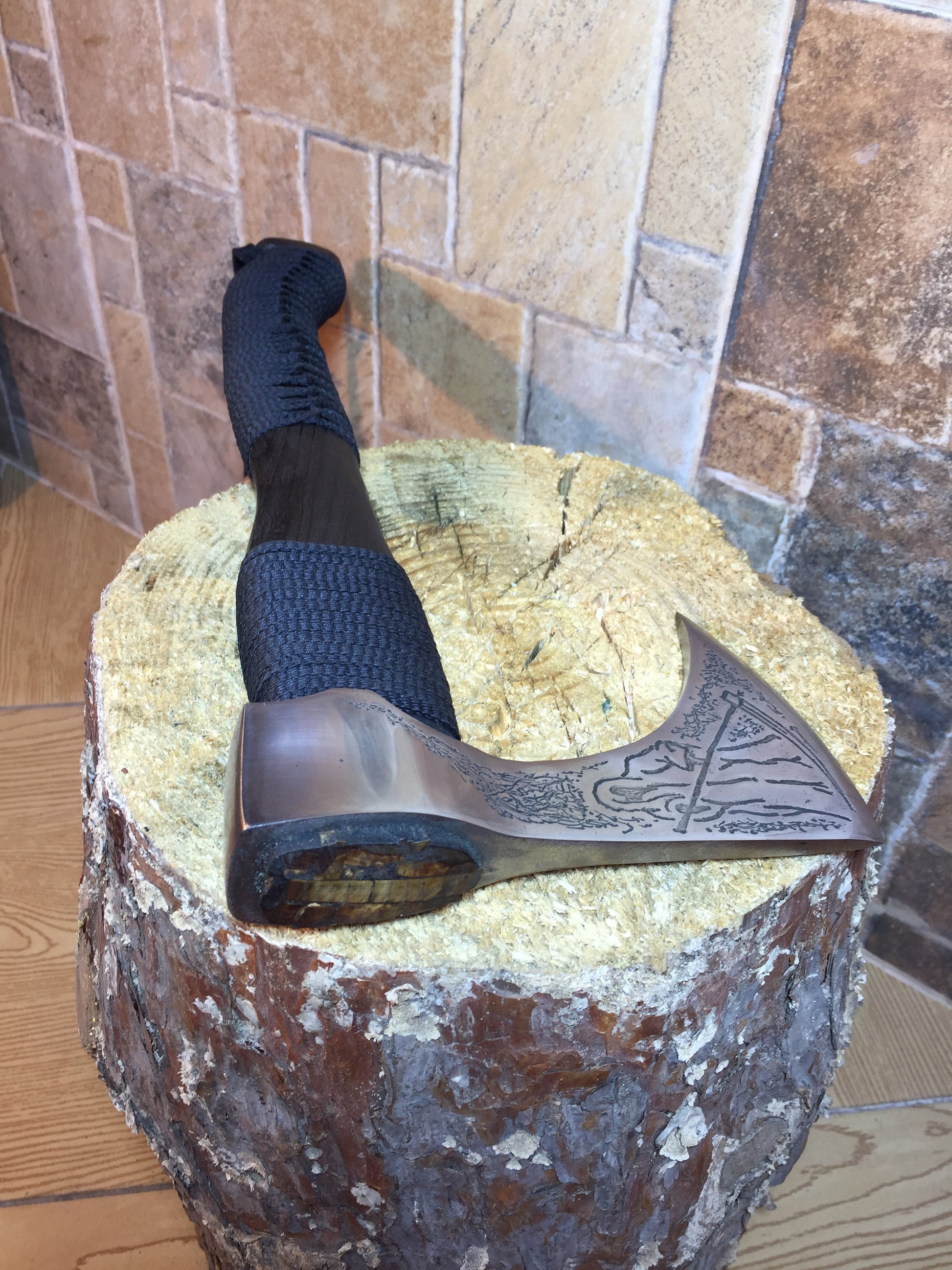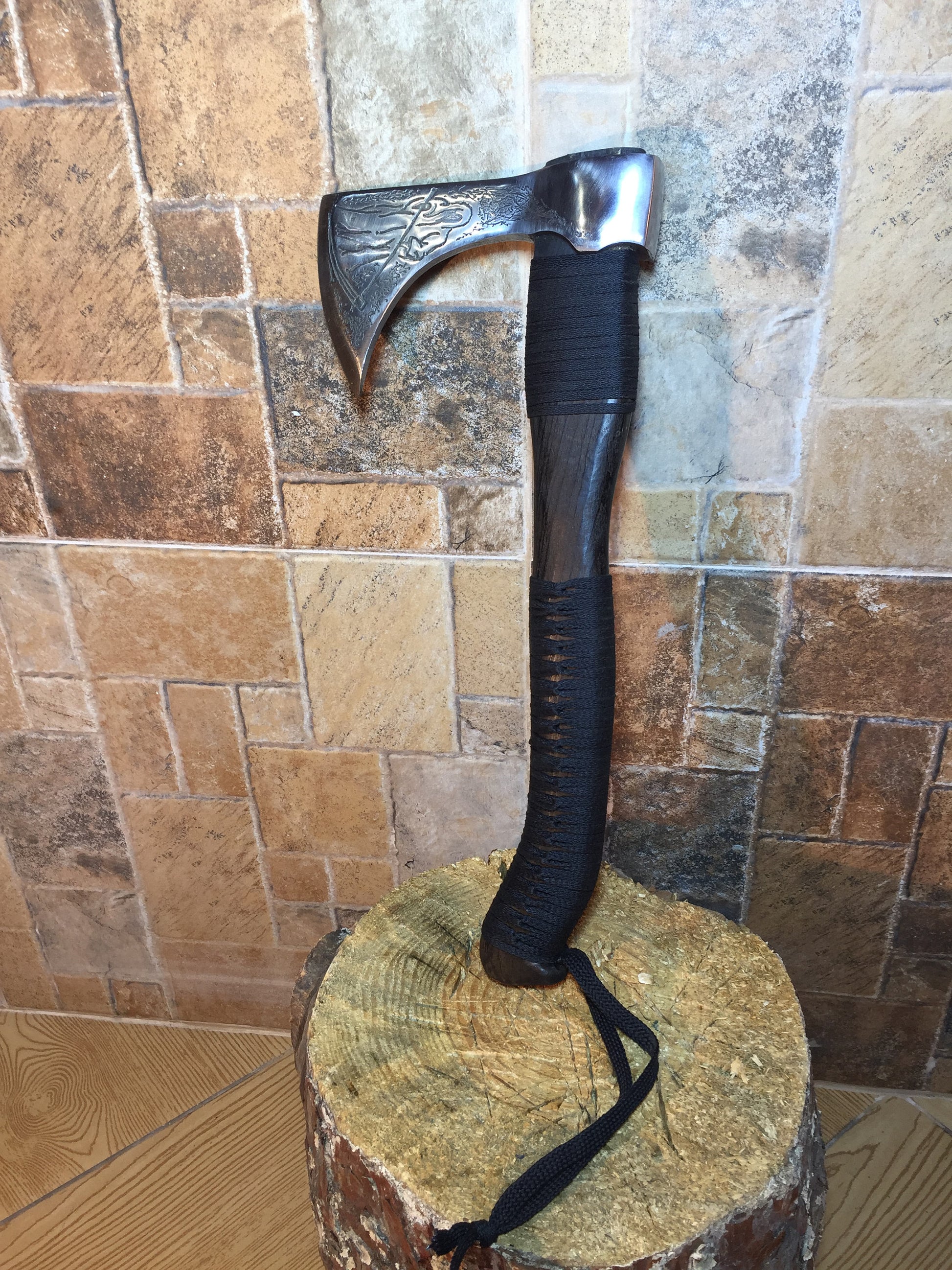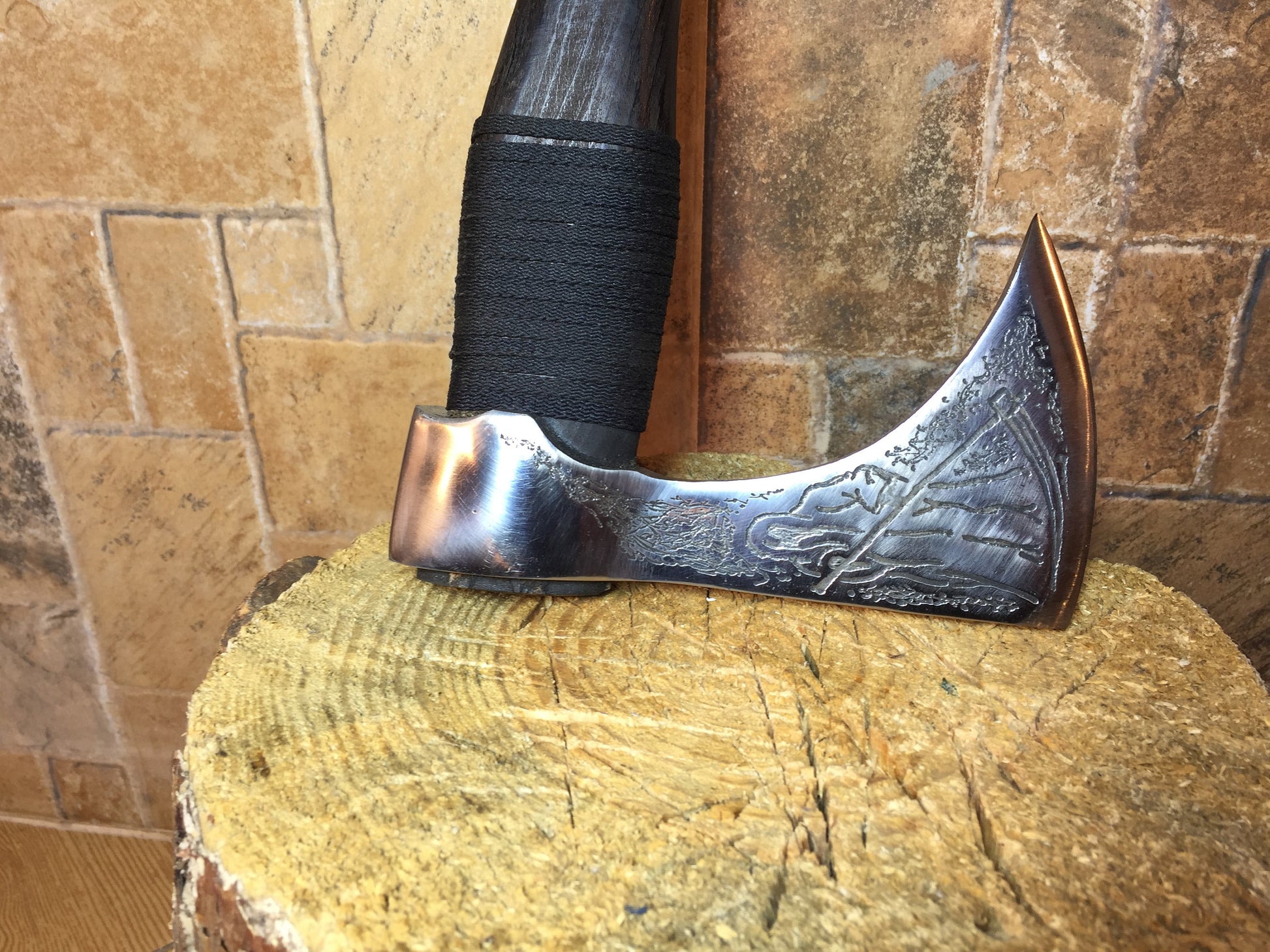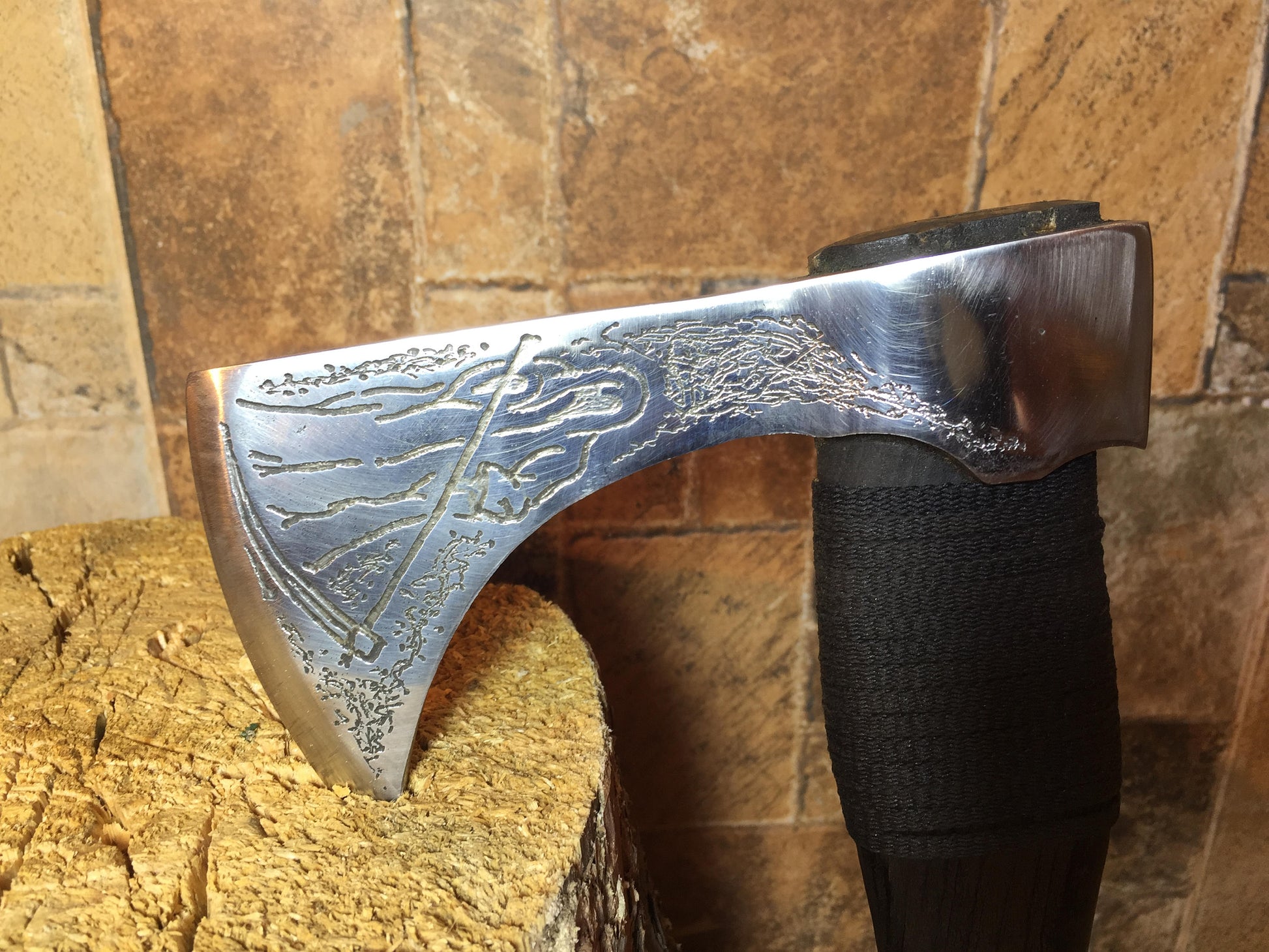 AXE WITH ENGRAVING ON AN AXE HEAD
