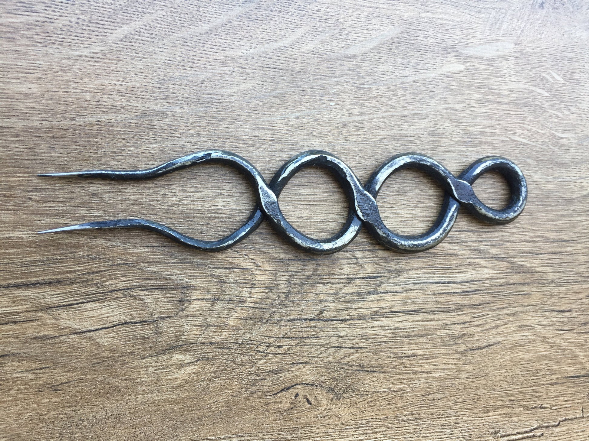 This flatware set (knife, fork, spoon, skewer, bottle opener) is made for every-day use or special occasions such as camping or renaissance reenactments. It will last forever.