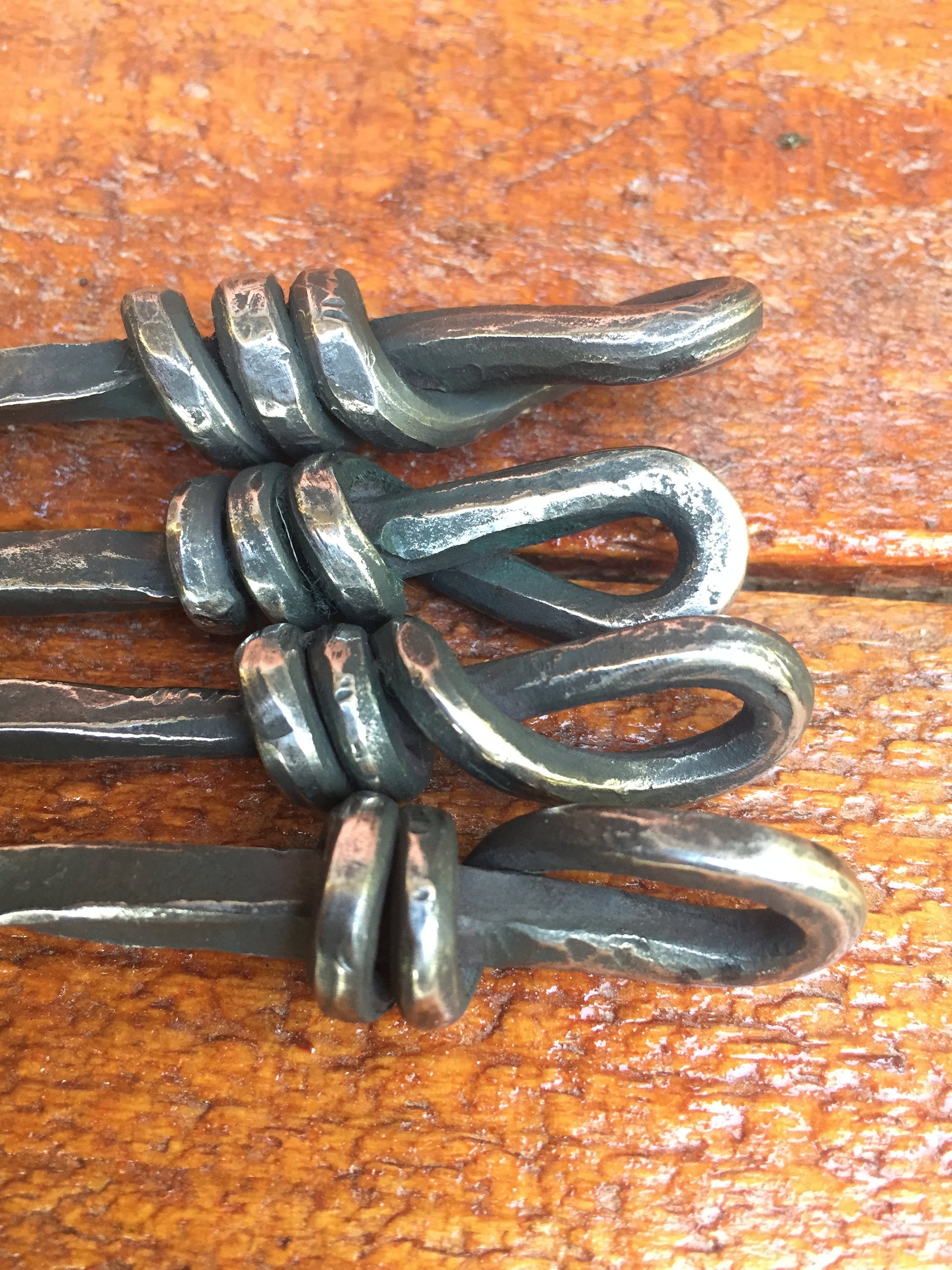 This rustic medieval cutlery (a set of 4 skewres) is worked entirely by hand and made of stainless steel. It is a unique offer since it is made of stainless steel. Hand forged in stainless steel -- an elegant but rugged cutlery set, intended for use, while maintaining a pleasing aesthetic presence as well. These items are unique in form but universal in application, and will weather several generations of use. It will never rust! It is done from 100% stainless steel.