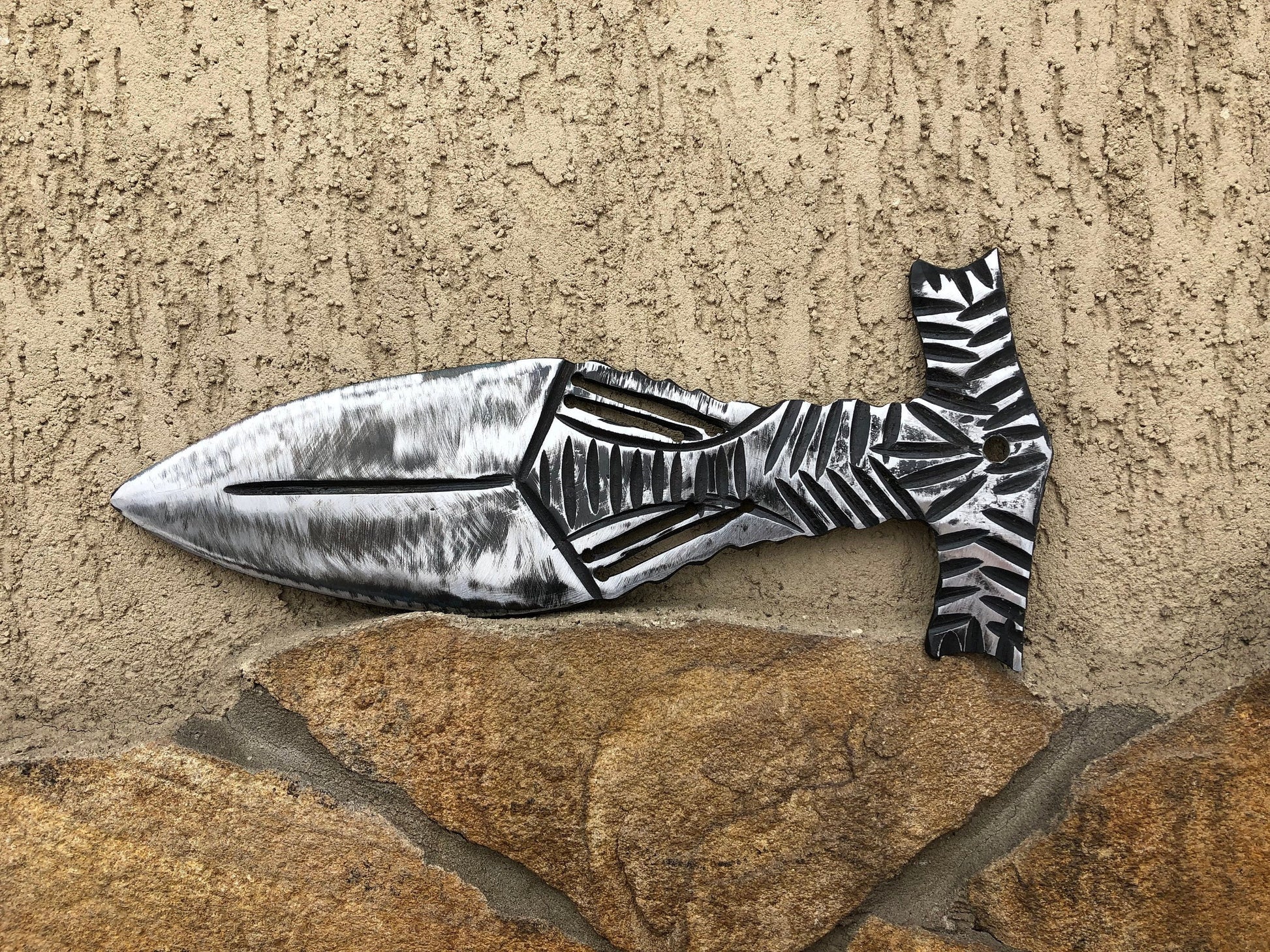 Here is a hand forged hand knife with a nicely decorated surface. This is a great groomsmen gift, corporate gift, usher gift, groom gift, father of the bride gift, 6th anniversary gift (iron year), 11th anniversary gift (steel year), Father's Day, Christmas gift for a grandfather or any other gifting occasion.