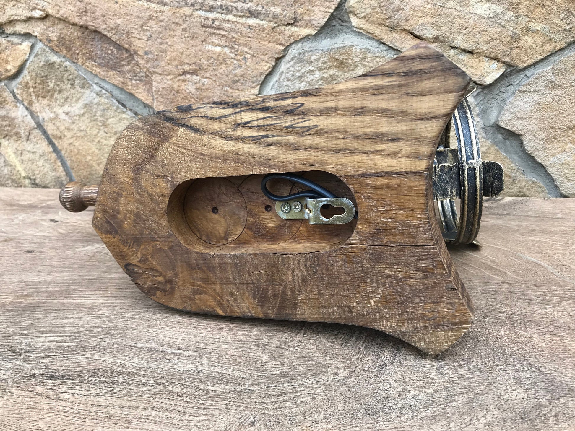 Colour: metal - black with some bronze patina, wood (oak) - dark brown.