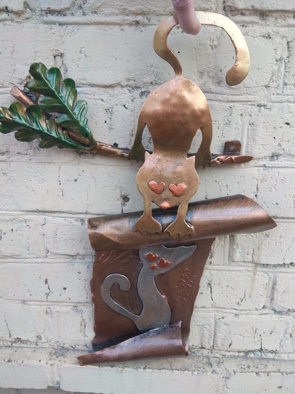 Here is a hand forged wall decor in a view of two cats. You can place it in any room of your house.