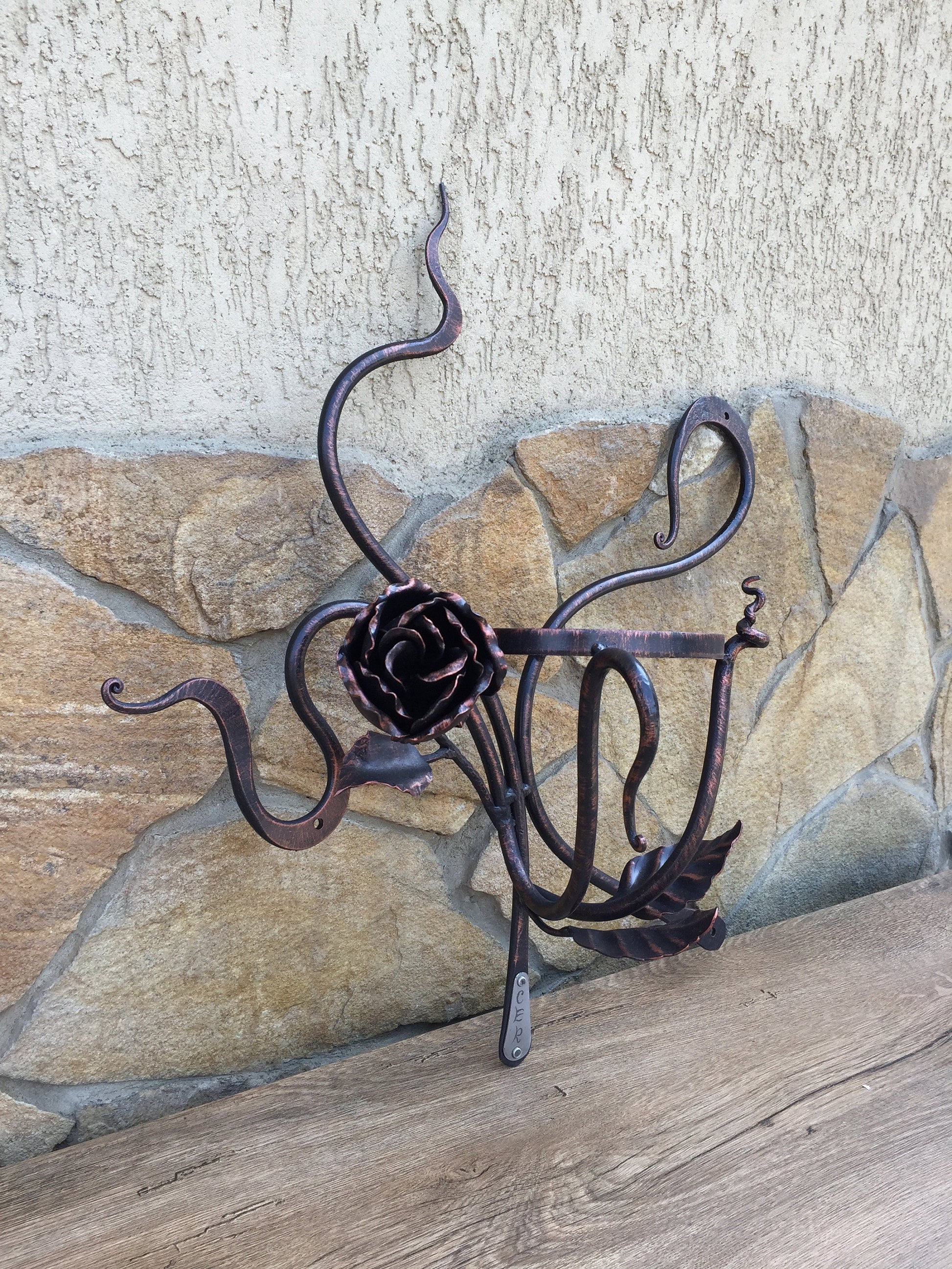 A hand forged plant stand for house plants for one flower pot. Perfect piece to display your favorite house plants! It is a very decorative piece of a home interior. Forged art. Functional piece of art!
