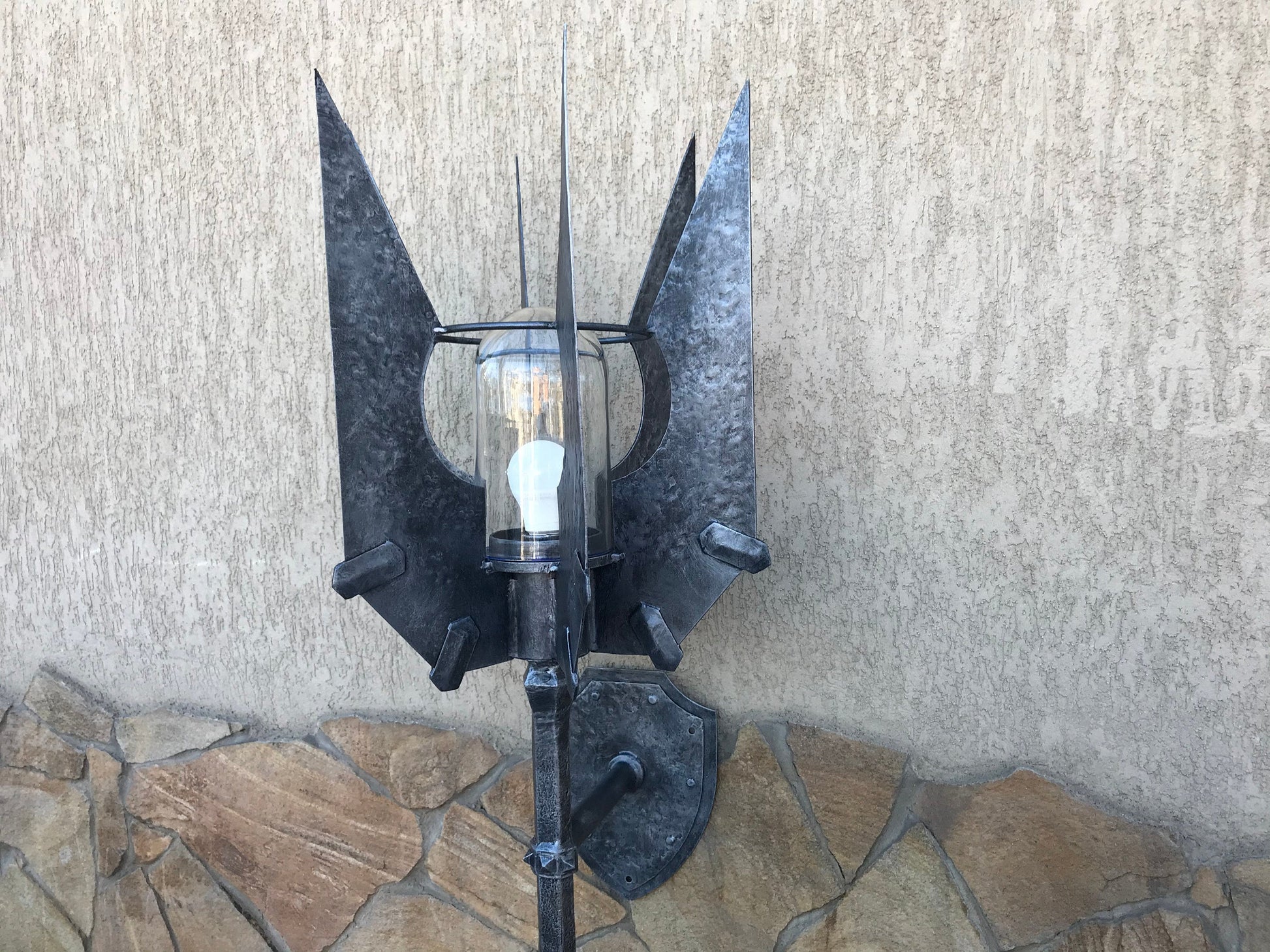 UNIQUE OFFER : HAND FORGED OUTDOOR WALL SCONCE IN A VIEW OF SAURON'S MACE