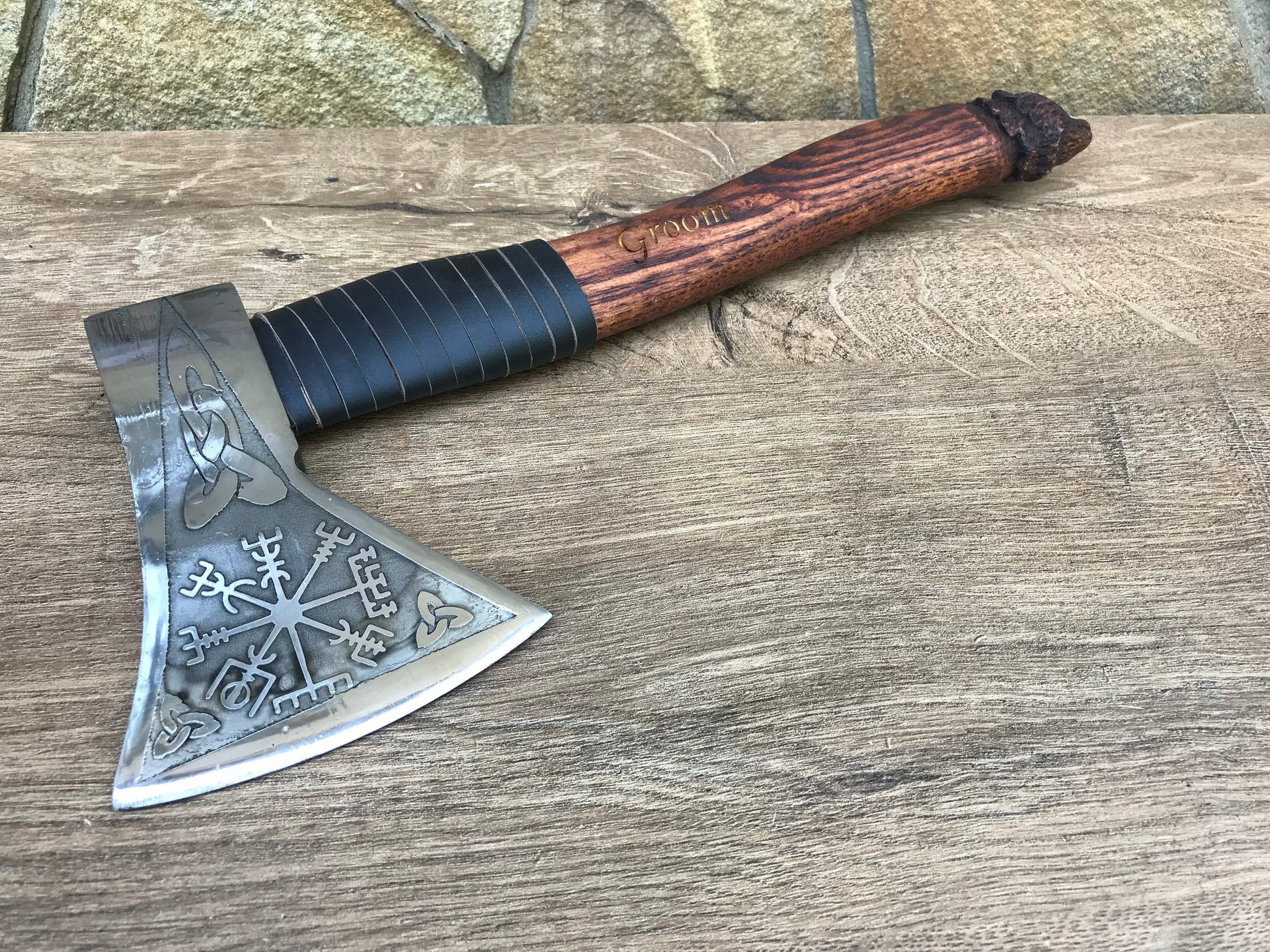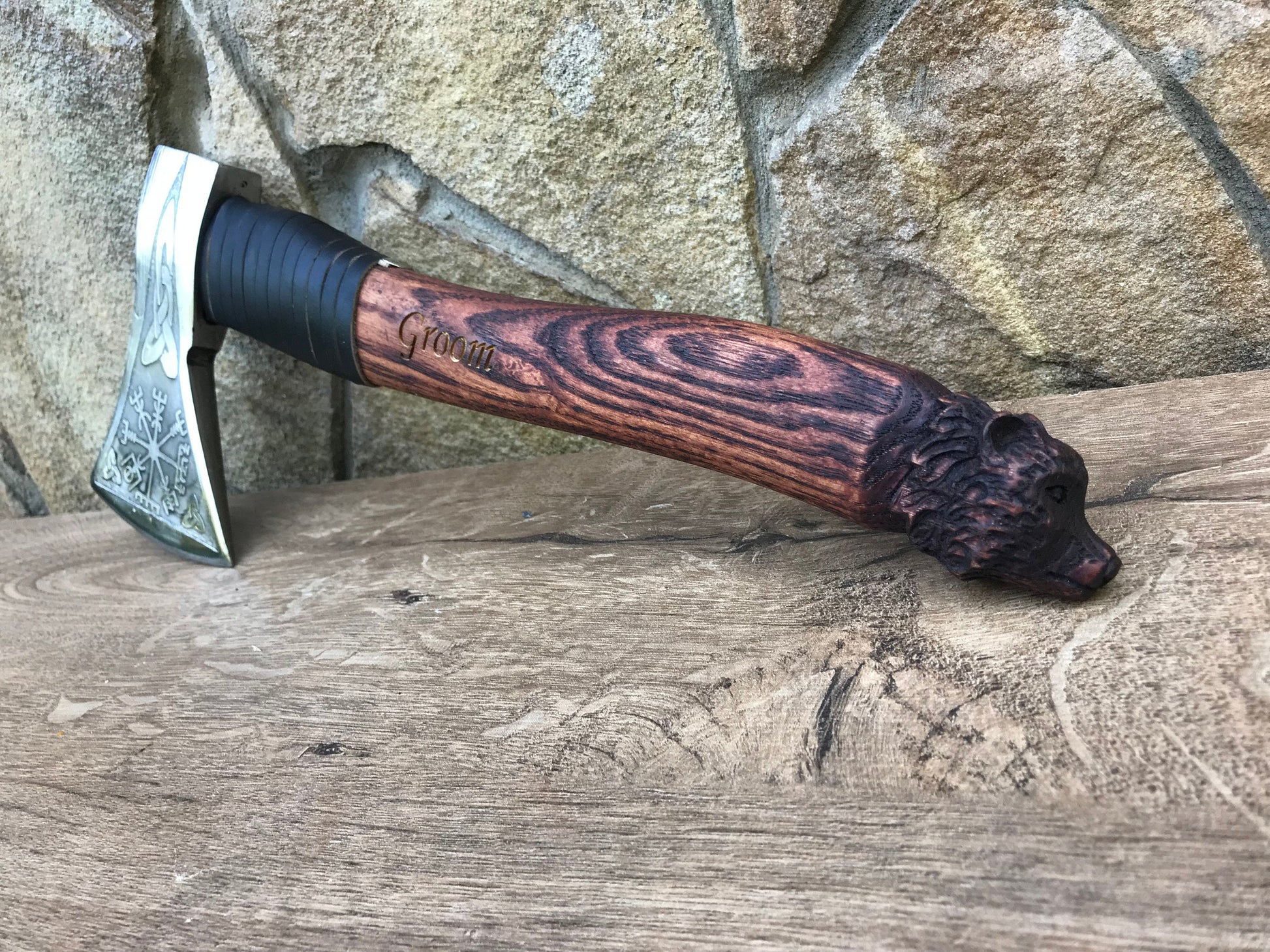 Wedding axe, viking axe, mens gifts, vegvisir, carved bear, groom gift, viking compass, wedding gift, groomsman gift, best man gift, axe