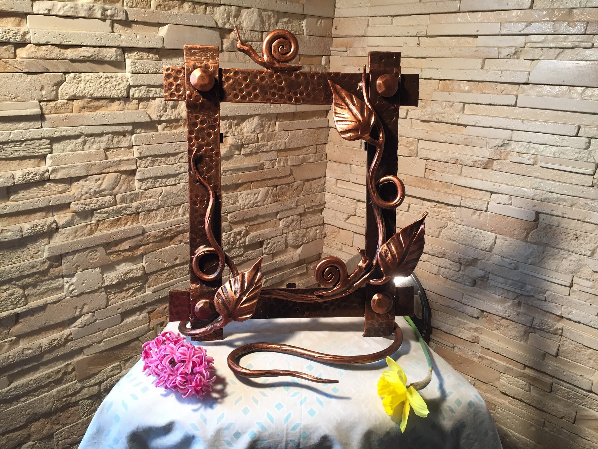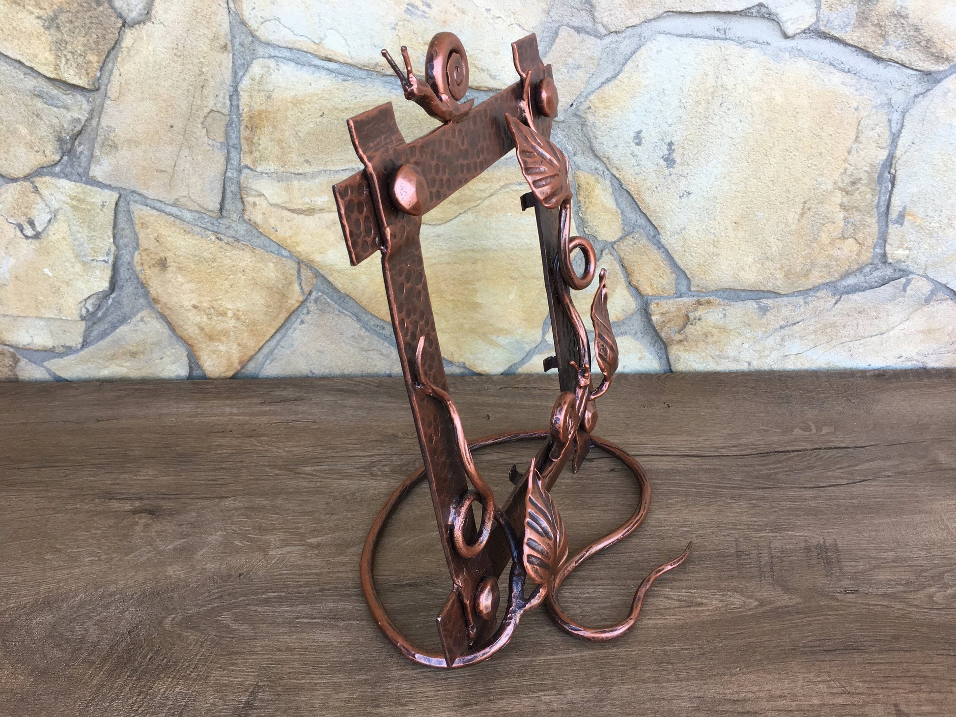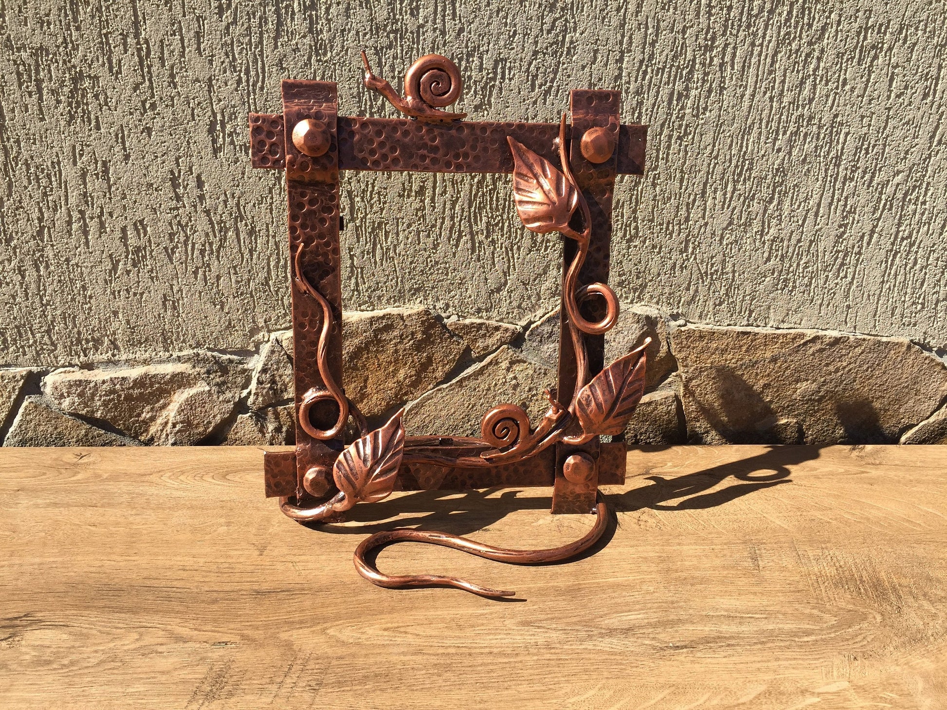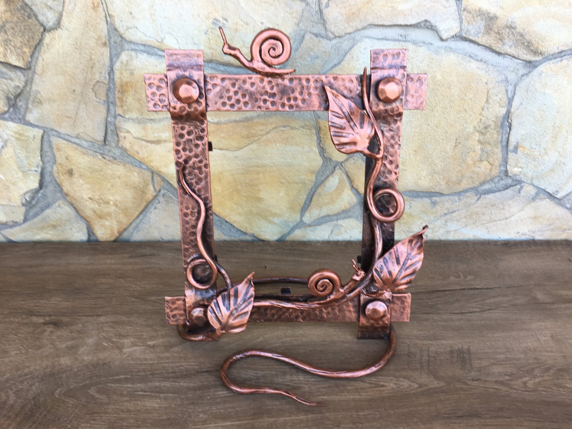 A photo frame can be not only a usual photo frame but a masterpiece which can decorate your home, can fix your best life events. Here is a nice hand made hand forged photo frame consisting of a nice branch with leaves and two snails.