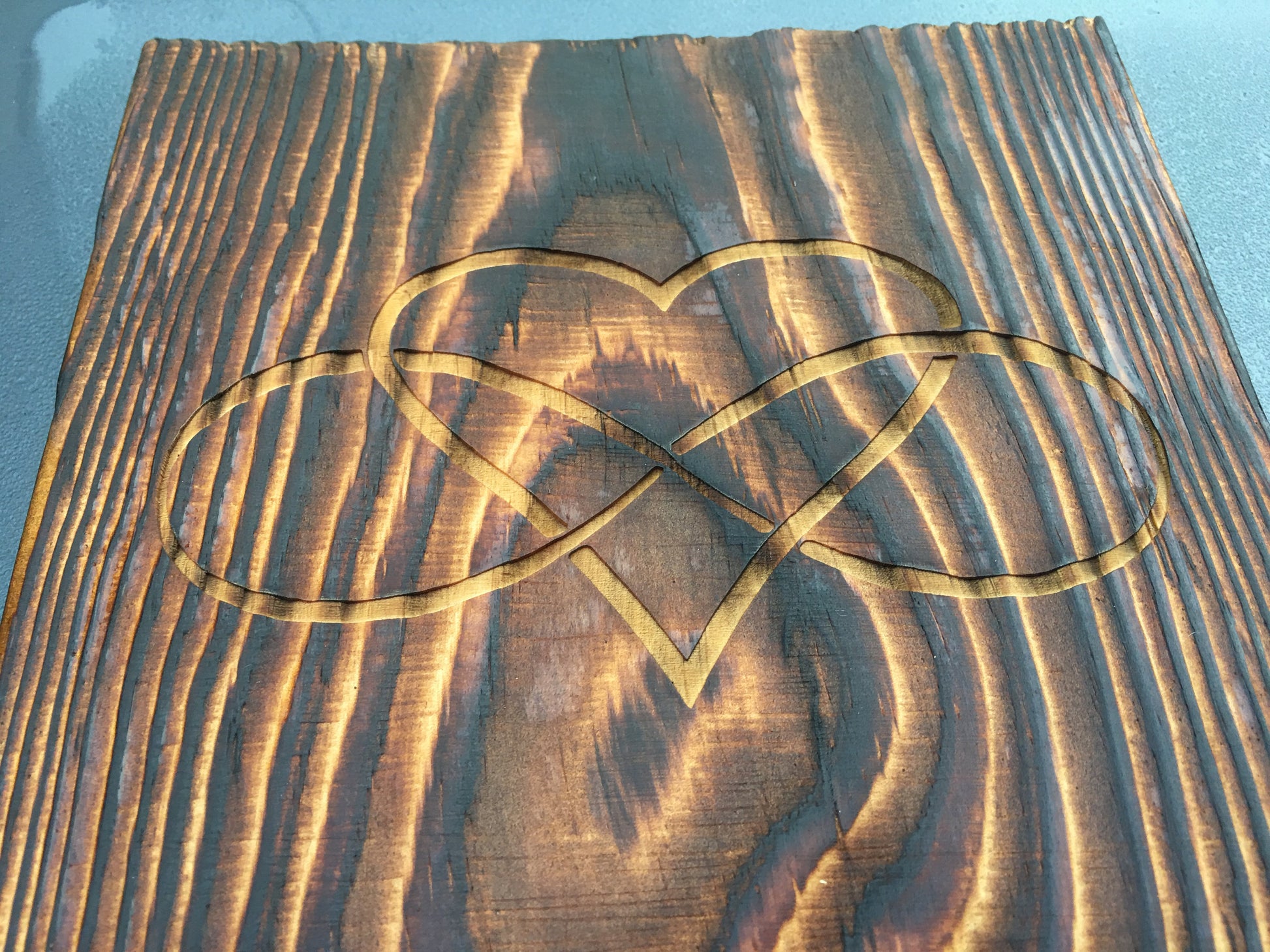 Are you looking for a nice wooden anniversary gift? Valentine's day gift? Wedding gift? Birthday gift? Valentine's day gift? Or just a home decor? Here is a wooden plaque with the engraved heart and infinity signs and a message which could be a nice wooden gift for your girl/woman/wife. The plaque is done from a pine with making it dark brown (artificially aged to make it old looking) to give it much beauty.
