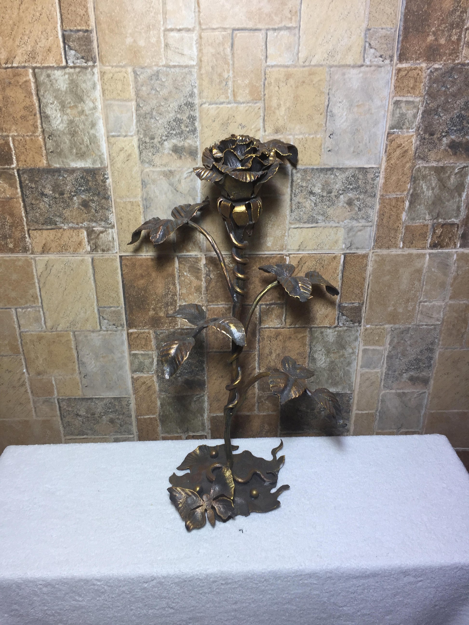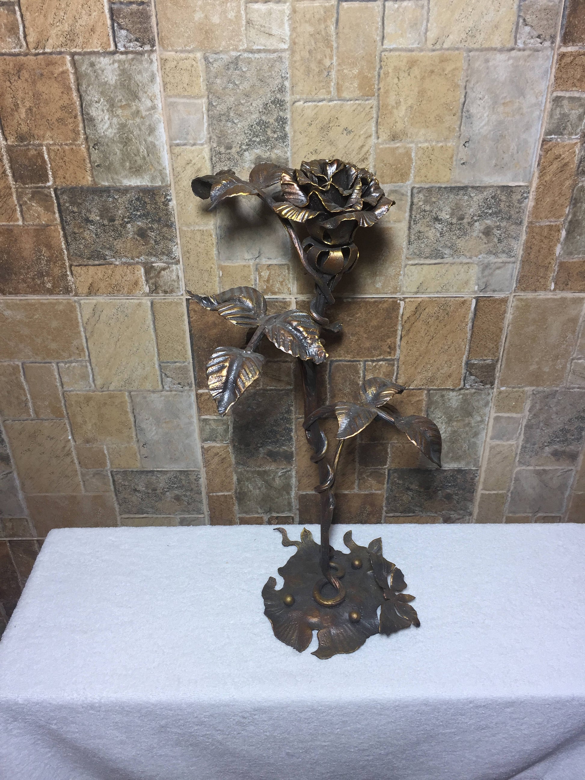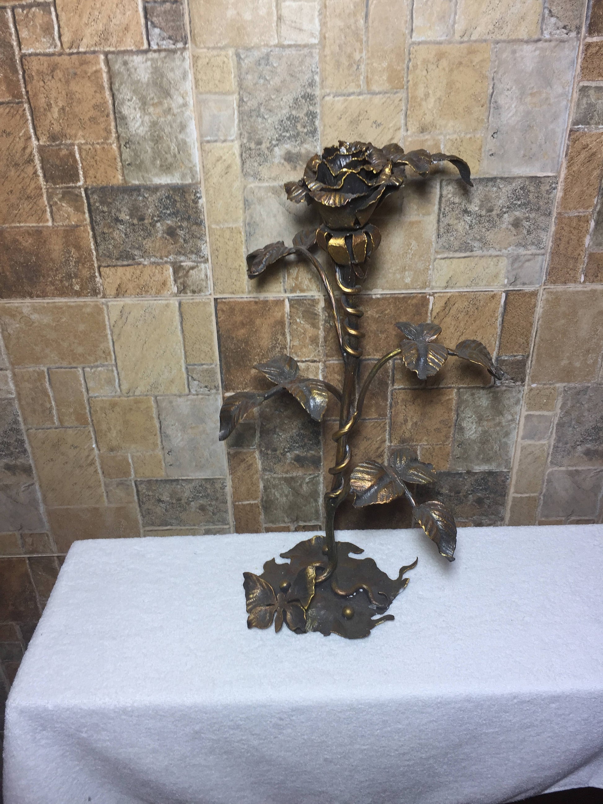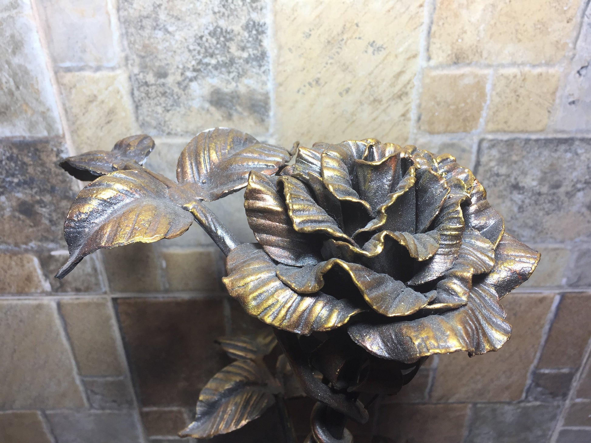 Wrought iron rose, steampunk furniture, forged rose, iron anniversary gift for her, metal sculpture, wrought iron gift for her, metal statue